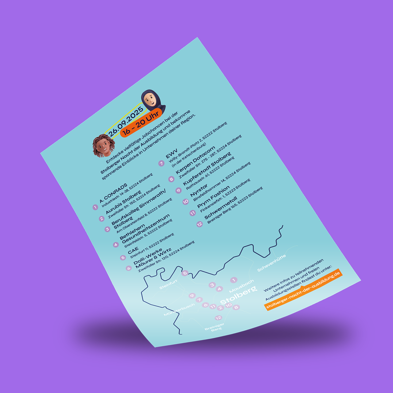 Eine Stadt, 13 Unternehmen und ein gemeinsames Ziel: frühzeitig Auszubildende für 2026 erreichen. Wir haben daraus eine Kampagne gemacht, die 2025er Neuauflage der Stolberger Nacht der Ausbildung. Für ein noch gezielteres Ausbildungsmarketing und zwei sehr unterschiedliche Zielgruppen.